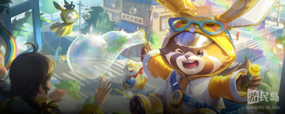 这款皮肤围绕无忧无虑的童年时光为主题进行整体设计,结合梦奇原本外形特点,他身着可爱的明黄色小雨衣,行走在水花四溅的细雨中。大大的耳朵被包裹在亮丽雨衣之下,帽子绘制可爱的萌萌头像,装饰天蓝色的萌趣眼镜,扭蛋状的电子宠物机别在算珠式样背包的肩带上,充满童年氛围,又趣味十足,小雨鞋闪闪发光,脚底竟然还有萌爪装饰,手上拿着童年的最爱——泡泡水,整体形象凸显了萌趣可爱的气质。
